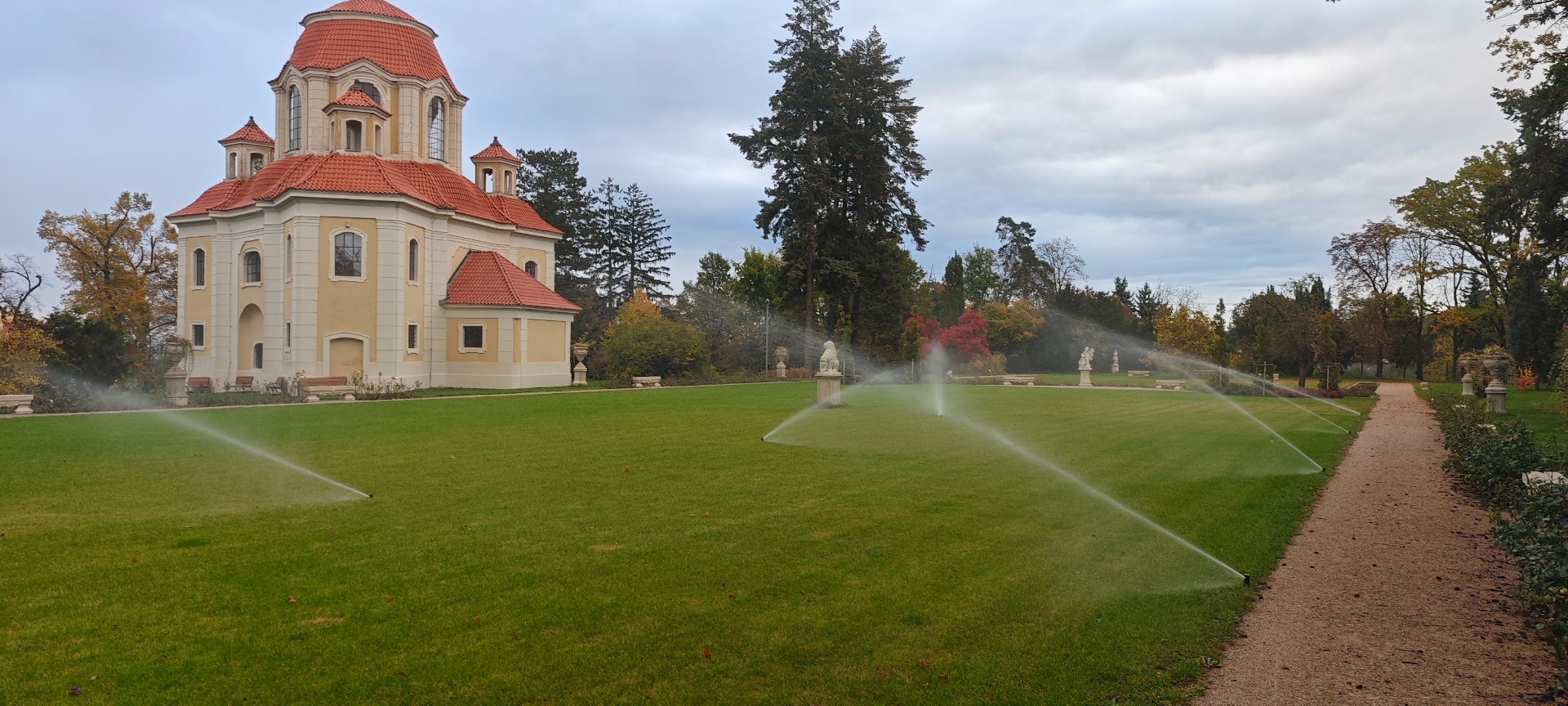 nstalujeme, zahrady rodinných domů, parky, sportovní plochy jako jsou fotbalová, tenisová, golfová hřiště, vertikální stěny, zelené střechy.